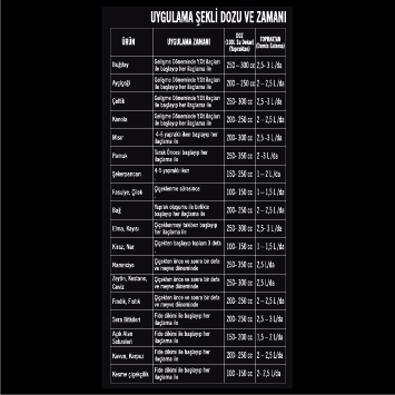 Suda çözünür potasyum oksit (K₂O) : % 4Unutmayın ki bitkimiz baştan beri güçlü olursa hastalık ve zararlılarla mücadele daha kolay olacaktır.